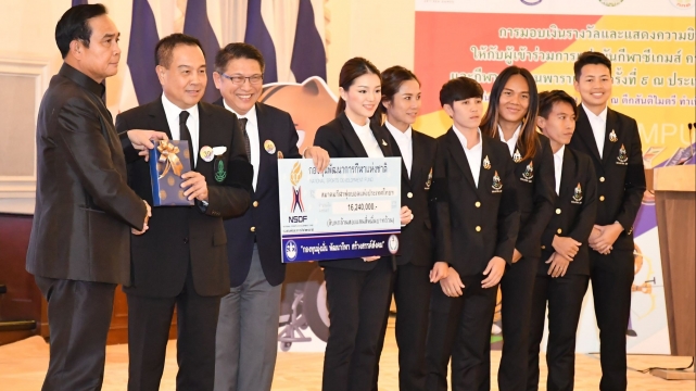 ล่าสุดเมื่อช่วงค่ำของวันที่ 26 กันยายนที่ผ่าน คณะรัฐบาลนำโดย "นายกลุงตู่"พลเอก ประยุทธ์ จันทร์โอชา นายกรัฐมนตรีและหัวหน้าคณะรักษาความสงบแห่งชาติ(คสช.) "บิ๊กป้อม"พลเอก ประวิทย์ วงศ์สุวรรณ รองนายกและ ประธานคณะกรรมการโอลิมปิค แห่งประเทศไทย , พลเอก ธนะศักดิ์ ปฎิมาปะกร รองนายกรัฐมนตรี , น.ส. กอบกาญจน์ วัฒนวรางกูร รัฐมนตรีว่าการกระทรวงการท่องเที่ยวและกีฬา และผู้บริหารการกีฬาแห่งประเทศไทย ได้ร่วมกันเปิดตึกสันติไมตรี ทำเนียบรัฐบาล จัดงานมอบเงินรางวัล และแสดงความยินดีแก่คณะนักกีฬา ที่เข้าร่วมการแข่งขัน กีฬาซีเกมส์ ครั้งที่ 29 และ อาเซี่ยนพารมเกมส์ ครั้งที่ 9 โดยสมาคมกีฬาฟุตบอล ได้รับรางวัลรวมจากการคว้า 3 เหรียญทอง 1 เหรียญเงิน เป็นจำนวนเงินกว่า 17 ล้านบาท