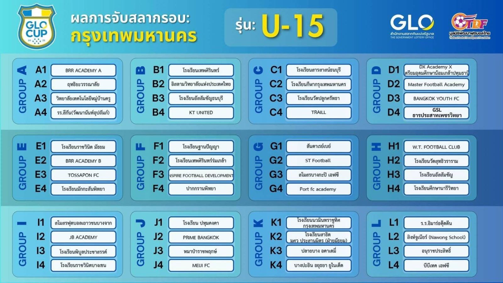 อัสสัมชัญธนบุรี อยู่ กลุ่ม B ฟุตบอล GLO CUP U15 รอบกรุงเทพมหานคร