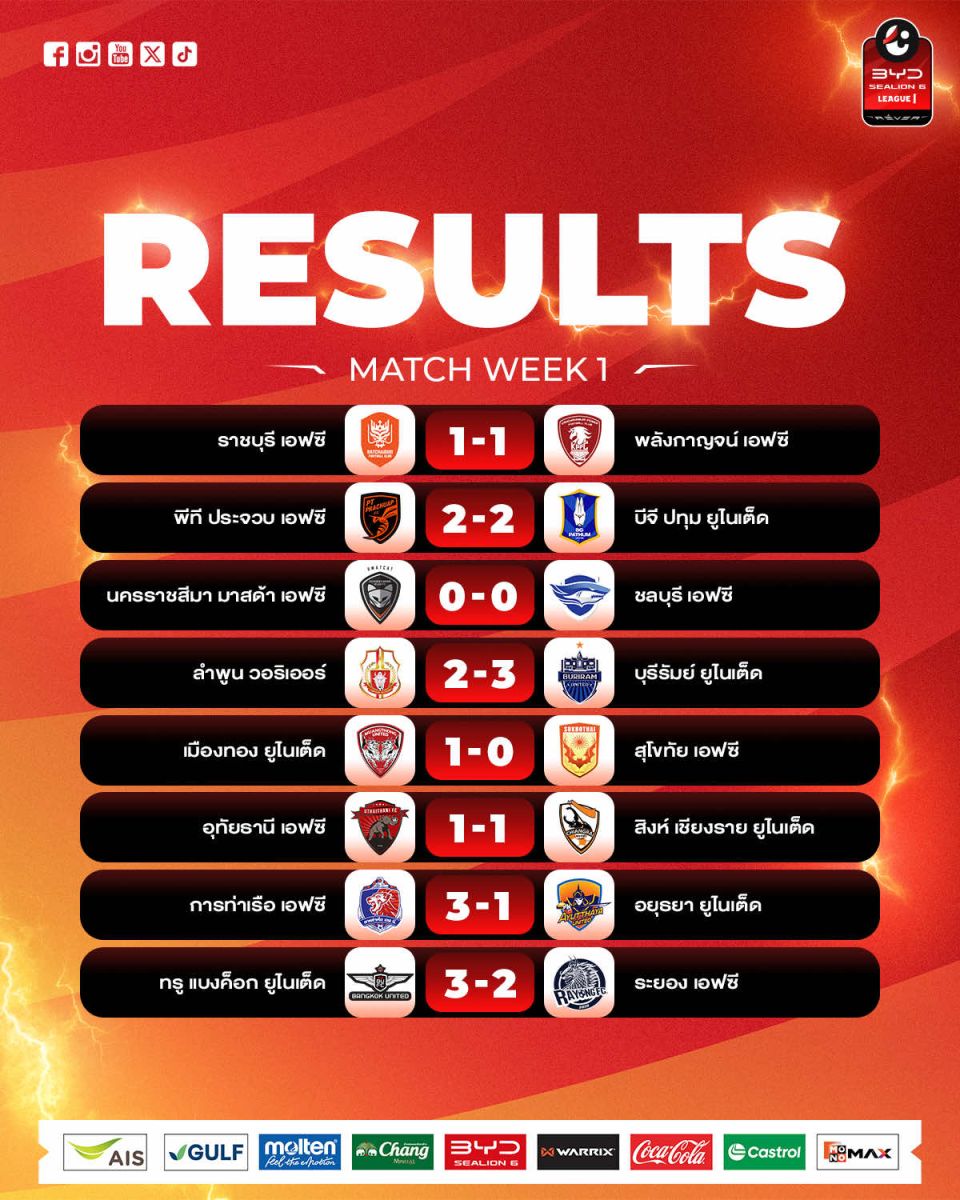 จบครบทุกคู่ !บีวายดี ซีไลออน ซิกส์ ลีกหนึ่ง 2025/26