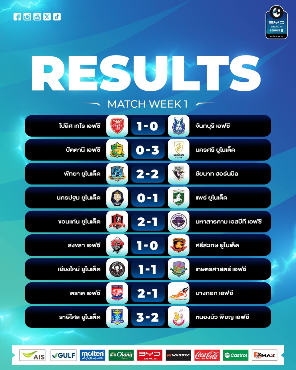 สรุปผล ศึก BYD SEAL 5 LEAGUE 2 SEASON 2025/26 ที่มา