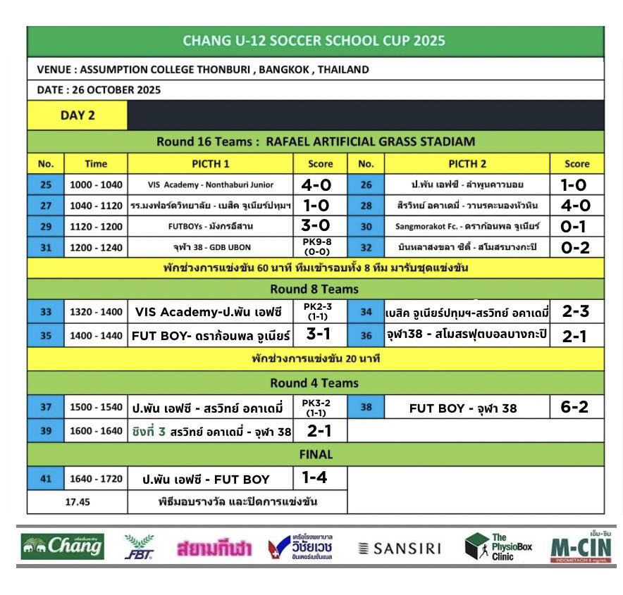 ฟุตบอล 7 คน รายการ Chang U-12 Soccer School Cup 2025 รุ่นอายุ 12 ปี เมื่อวันที่ 25-26 ตุลาคม 68 ที่สนามราฟาเอล โรงเรียนอัสสัมชัญธนบุรี ที่มา