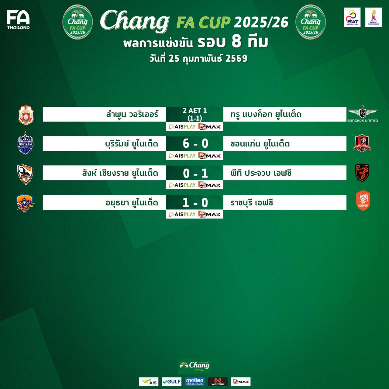 ฟุตบอลรายการ "ช้าง เอฟเอ คัพ" ฤดูกาล 2025/26 รอบ 8 ทีมสุดท้าย