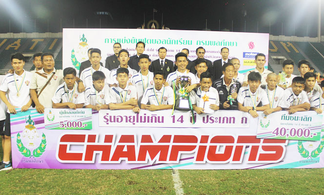 รุ่น 14 ปี ก ''กิเลนเจ้าสัว'' อัสสัมชัญธนบุรีฟอร์มยอดเยี่ยมเฉือน ''ชมพูฟ้า'' สวนกุหลาบวิทยาลัย 1-0 ในการแข่งขันฟุตบอลนักเรียนกรมพลศึกษา ที่สนามศุภชลาศัย เมื่อวันที่ 17 ธ.ค.ที่ผ่านมา