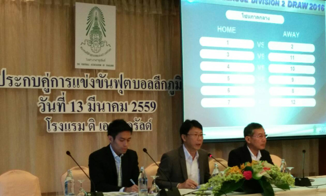 เมื่อวันที่ 13 มี.ค 59 ที่ผ่านมา ณ ห้องพาโนรามา 1 ชั้น 14 โรงแรมดิเอมเมอรัลด์ กรุงเทพฯ ได้มีพิธีจับสลากประกบคู่การแข่งขันฟุตบอลลีกอาชีพ รายการ "ลีกภูมิภาค ดิวิชั่น 2" ของแต่ละโซน จำนวนทั้งสิ้น 8 โซน โดยมี ศุภสิน ลีลาฤทธิ์ อุปนายกฝ่ายจัดการแข่งขัน สมาคมกีฬาฟุตบอลฯ เป็นประธานในพิธี พร้อมด้วย ชนินทร์ แก่นหิรัญ ฝ่ายกฎหมายสมาคมฯ ซึ่งมีตัวแทนจากทีมในลีกภูมิภาค เข้าร่วมเป็นศักขีพยานในการจับสลากครั้งนี้