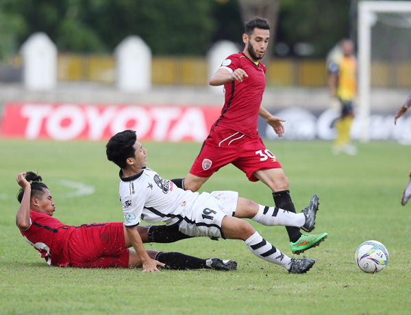 เจ้ากินได้ใจรุกหนัก น. 37 เจ้าถิ่นมีโอกาสตีเสมอเมื่อได้จุดโทษจากการที่ ศรุต สินธิเพชร ไปทำฟาวล์ ธนพล เวชยา ในเขตโทษล้มลงกรรมการเป่าจุดโทษทันที และเป็น อาลี ฮัมโมดิฟ อาร์ซานี่ รับหน้าที่สังหารไปทางขวามือตัวเองแต่ถูกทาง มุนเซ่ อุลริช ผู้รักษาประตูอัสสัมชัญ ยูไนเต็ด เดาทางถูกพุ่งปัดมือเดียวออกไปสุดสวยทำให้ลูกอีสาน เอฟซี พลาดการตีเสมออย่างน่าเสียดาย ทำให้จบครึ่งแรก ลูกอีสาน เอฟซี ตาม อัสสัมชัญ ยูไนเต็ด 1-2