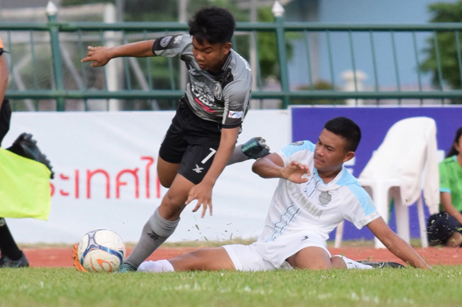 จากนั้นเกมยังเปิดหน้าใส่กันอย่างสนุก แต่มีจังหวะตัดเกมทำฟาวล์กันหลายครั้ง ทำให้ผู้ตัดสินต้องเป่าหยุดเกม ตักเตือนนักเตะในวัยนี้ป็นระยะ แต่ในนาที34 ทรู แบงค็อกฯ ต้องมีเสียผู้เล่นคนสำคัญ จากจังหวะปะทะกัน ณพัฐภ์ กุดนันท์ กองหน้าตัวเก่งได้รับบาดเจ็บหนักต้องถูกหามเปล ออกจากสนามและเล่นต่อไม่ไหว และจบครึ่งแรก ยังเสมอกัน0-0