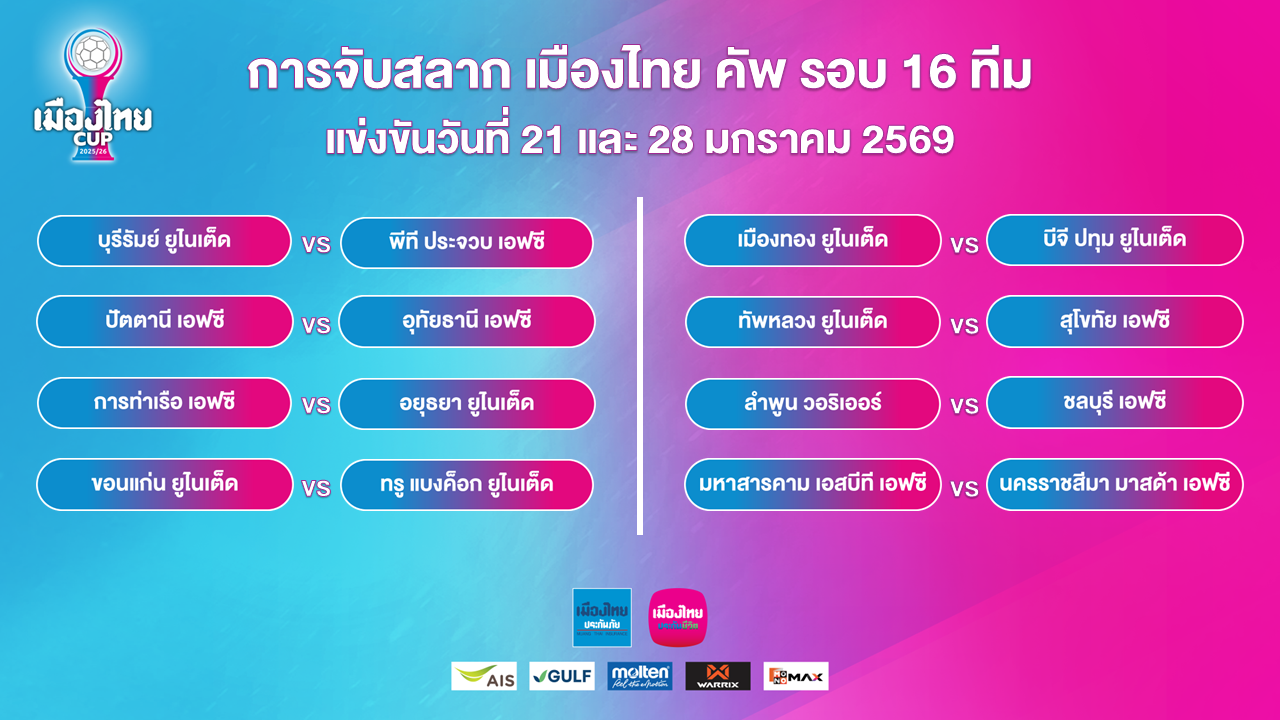 สมาคมกีฬาฟุตบอลแห่งประเทศไทยฯ จัดพิธีจับสลากประกบคู่การแข่งขันฟุตบอล เมืองไทย คัพ ฤดูกาล 2025/26 รอบ 16 ทีม
